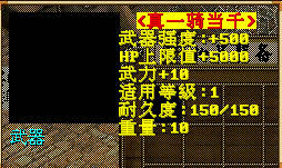真一騎當千:武器強度+500,武器命中+90,武力+10,HP+5000(根據職業選擇武器種類)